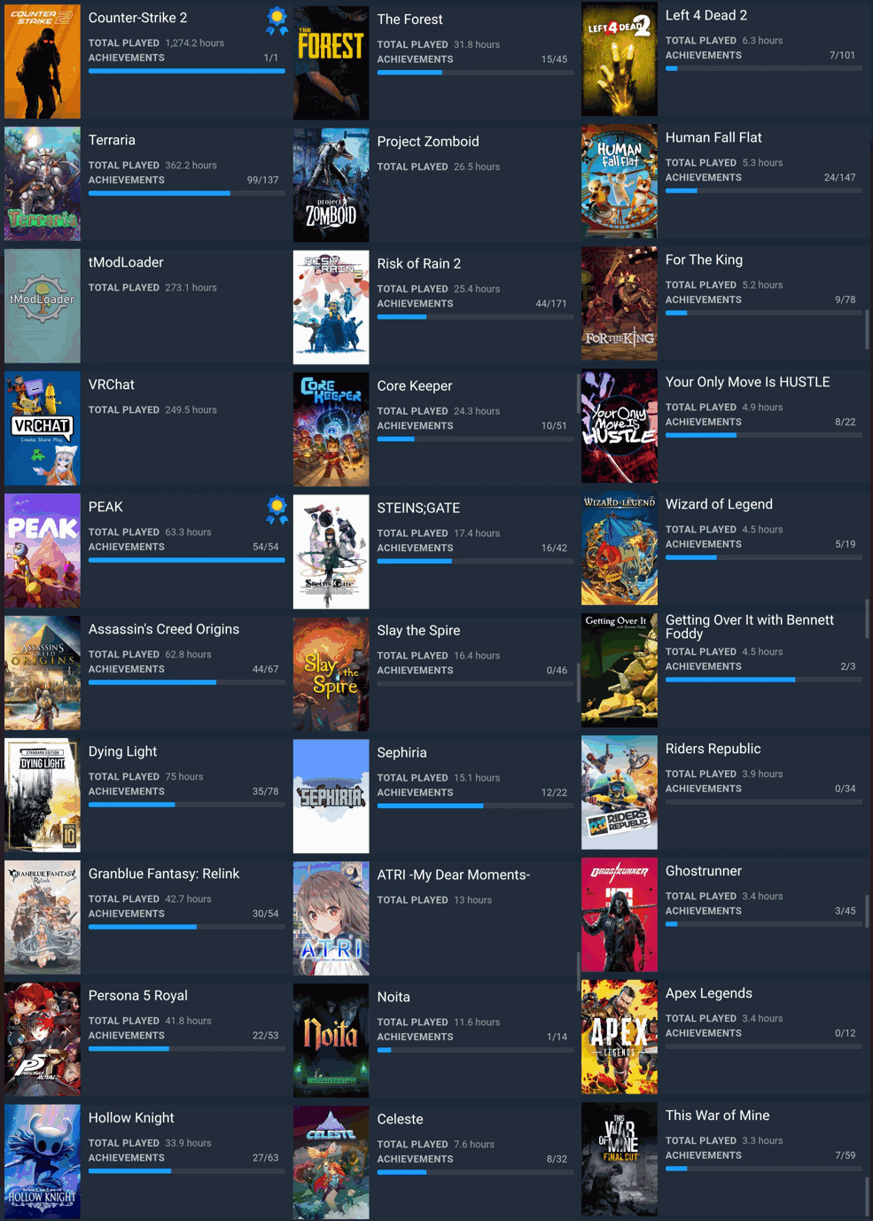 My favorites include Terraria, Minecraft, Dying Light, Assassin’s Creed Origins, and Genshin Impact.